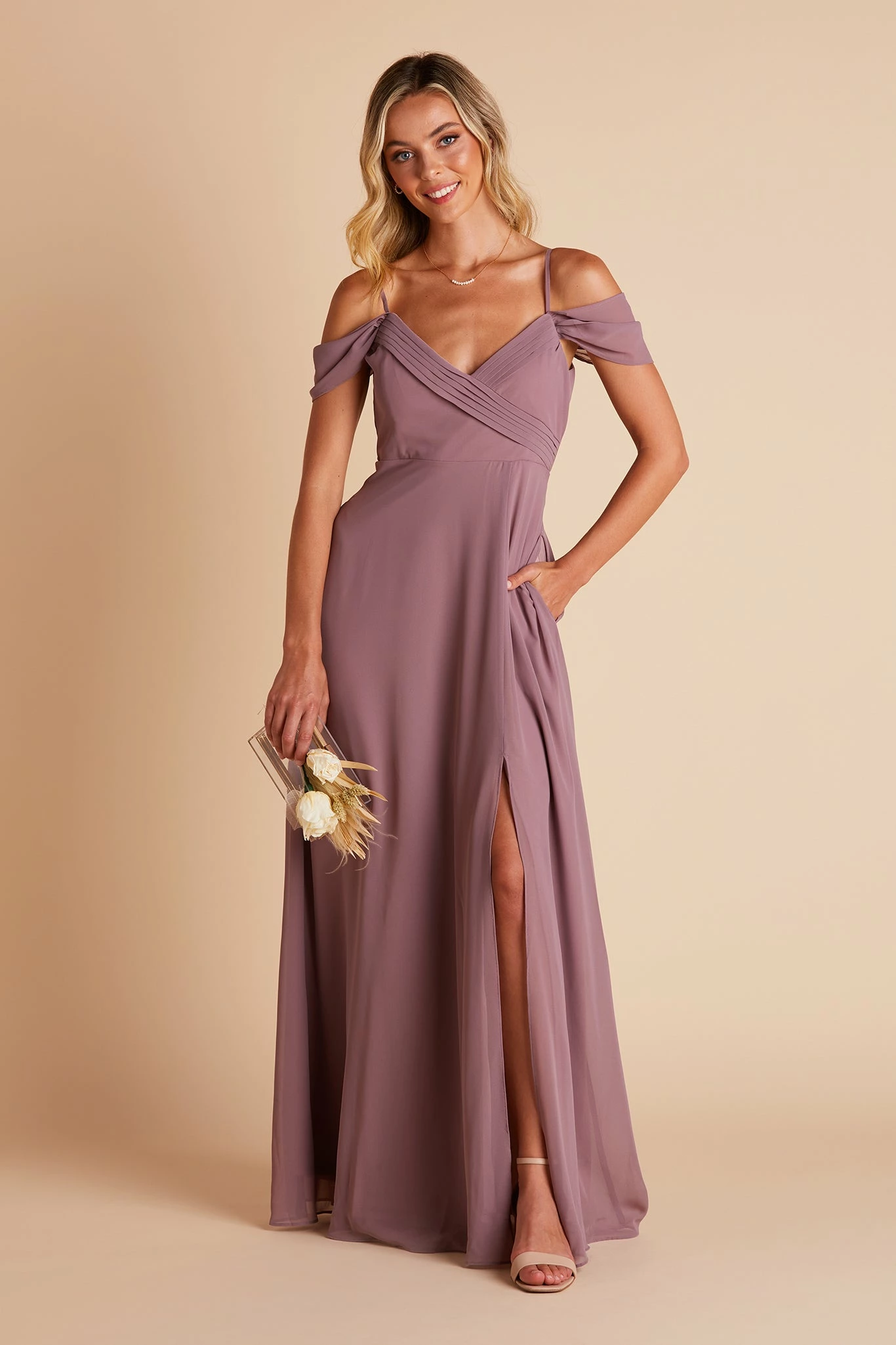 We’ve got heart eyes all over this gown for its romantic vibe and versatility. Spun of airy chiffon that moves gracefully from the aisle to the dance floor, this convertible bridesmaid dress can be worn in 3 differen ways. Try it strapless with draped sleeves (built-in boning + bra cups ensure it stays put), or keep the straps on for a cold shoulder look for added support. Want even more coverage? Pull the sleeves up to your shoulders for an elegant cap sleeve style. Mix and match is a piece of cake with this convertible bridesmaid dress!