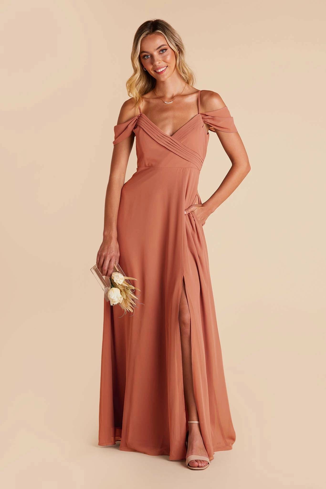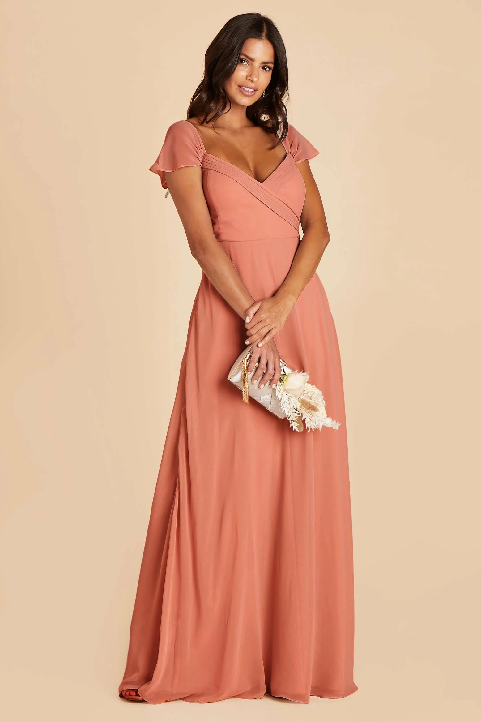 We’ve got heart eyes all over this gown for its romantic vibe and versatility. Spun of airy chiffon that moves gracefully from the aisle to the dance floor, this convertible bridesmaid dress can be worn in 3 different ways. Try it strapless with draped sleeves (built-in boning + bra cups ensure it stays put), or keep the straps on for a cold shoulder look for added support. Want even more coverage? Pull the sleeves up to your shoulders for an elegant cap sleeve style. Mix and match is a piece of cake with this convertible bridesmaid dress!