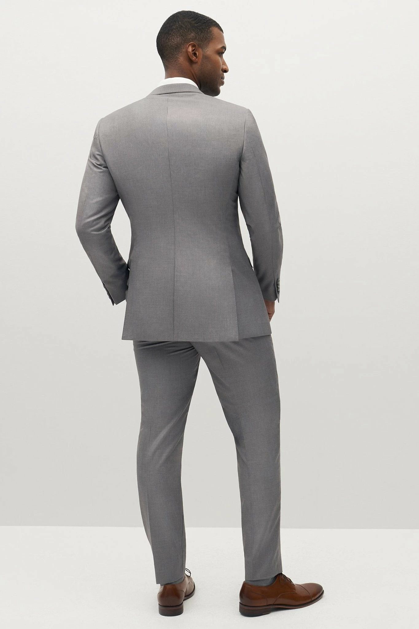 We call this an elevated classic. We love this handsome groomsmen suit from SuitShop for its goes-with-anything gray that’s perfect for a spring wedding. It lets your guys look sharp while providing a canvas to work in their personal touch (we think it looks especially snazzy with a pair of brown oxford or blucher shoes). The fully lined jacket has a notch lapel, flap pockets and a two-button closure, while the pants come with an unfinished hem and split waist construction for easy alteration and slant front pockets. Pair it with one of our skinny neck ties or bow ties for a matching look with the entire wedding party. *Fulfilled by our friends at SuitShop