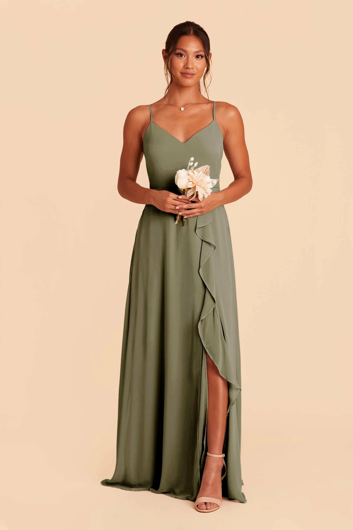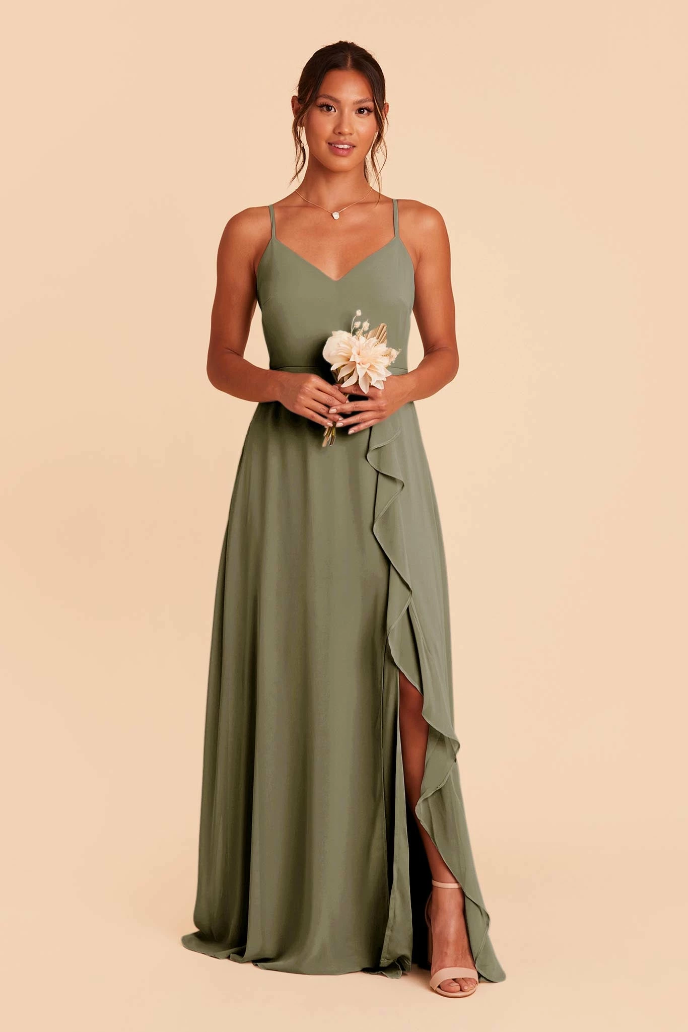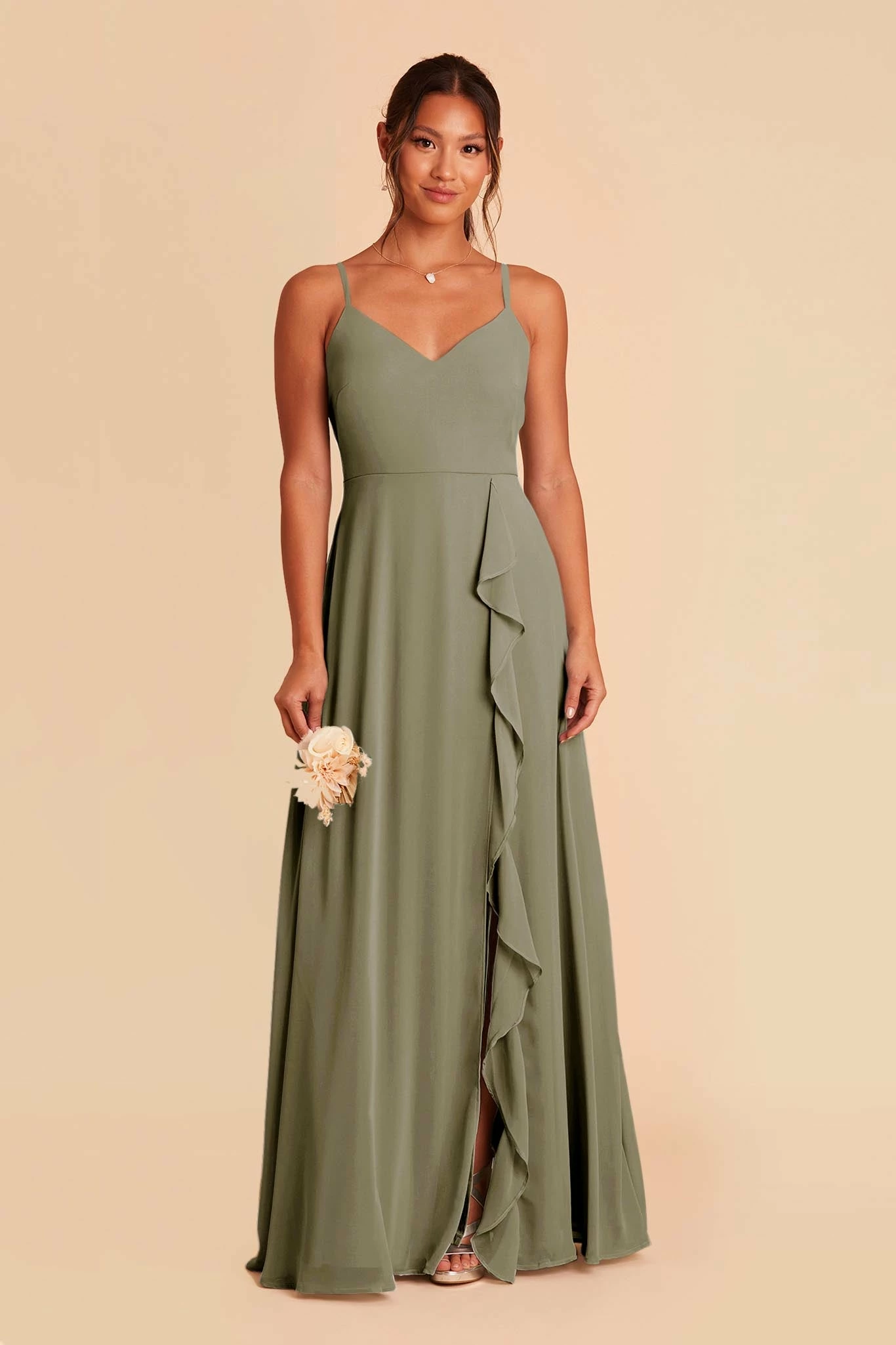 Timeless style, meet ultimate breathtaking details. We think you’ll be the perfect match. The downright class of this understated, super flattering bodice paired with a chiffon ruffle cascading down the leg slit gives a waterfall effect while you strut down that aisle. You still get all the side-slit sass, just elegantly softened with a feminine ruffle. Talk about the best of both worlds. Plus, the adjustable spaghetti straps with two ways to wear give you all the comfy options to make sure you’re dancefloor-ready all night long.