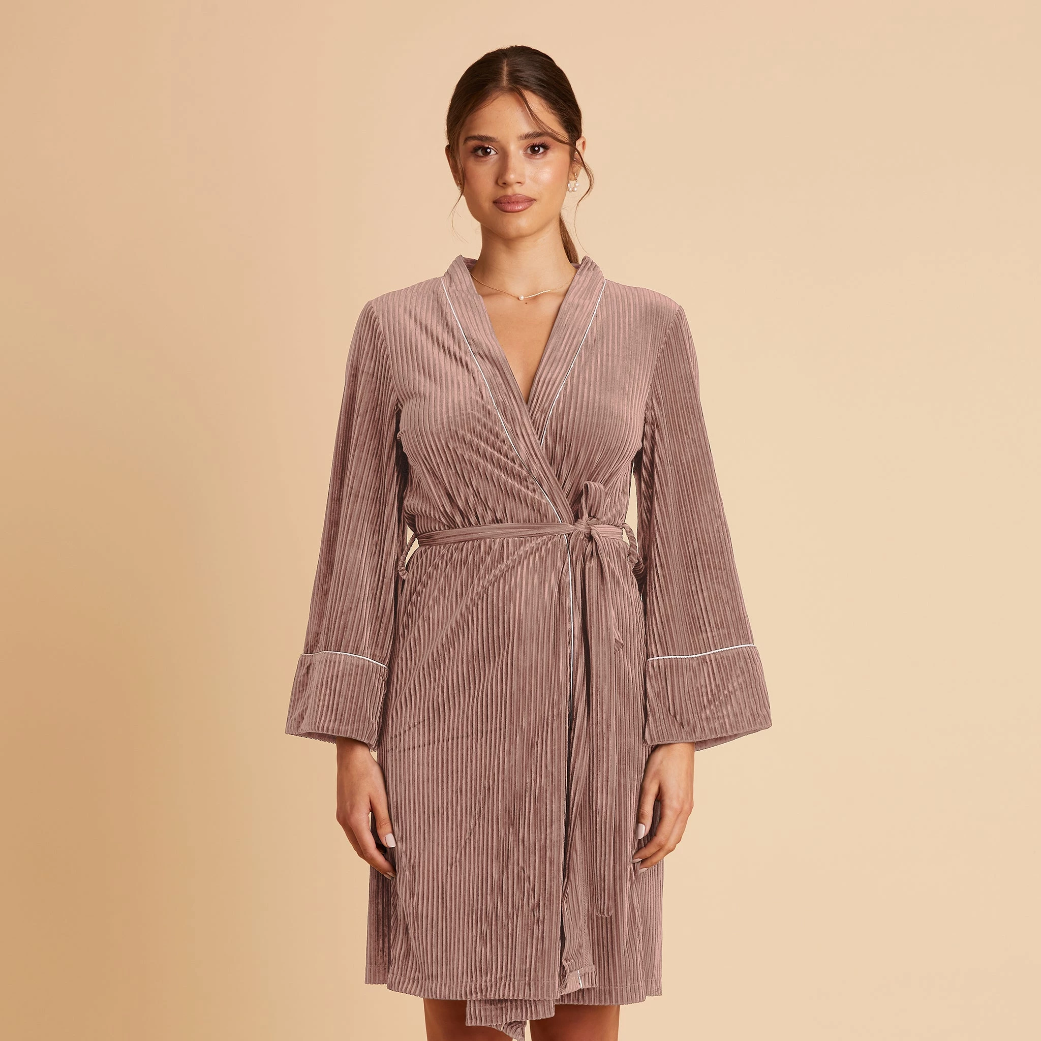 Fall and winter bridesmaids, get cozy! We love the jewel-toned hues of these plush velvet robes with modern ribbed detailing to add some luxe feels to your bridal suite. Bundle up while you get ready for the most dreamy cold-weather nuptials in wrap-style robes that say “we’re the most refined bridesmaids around.”