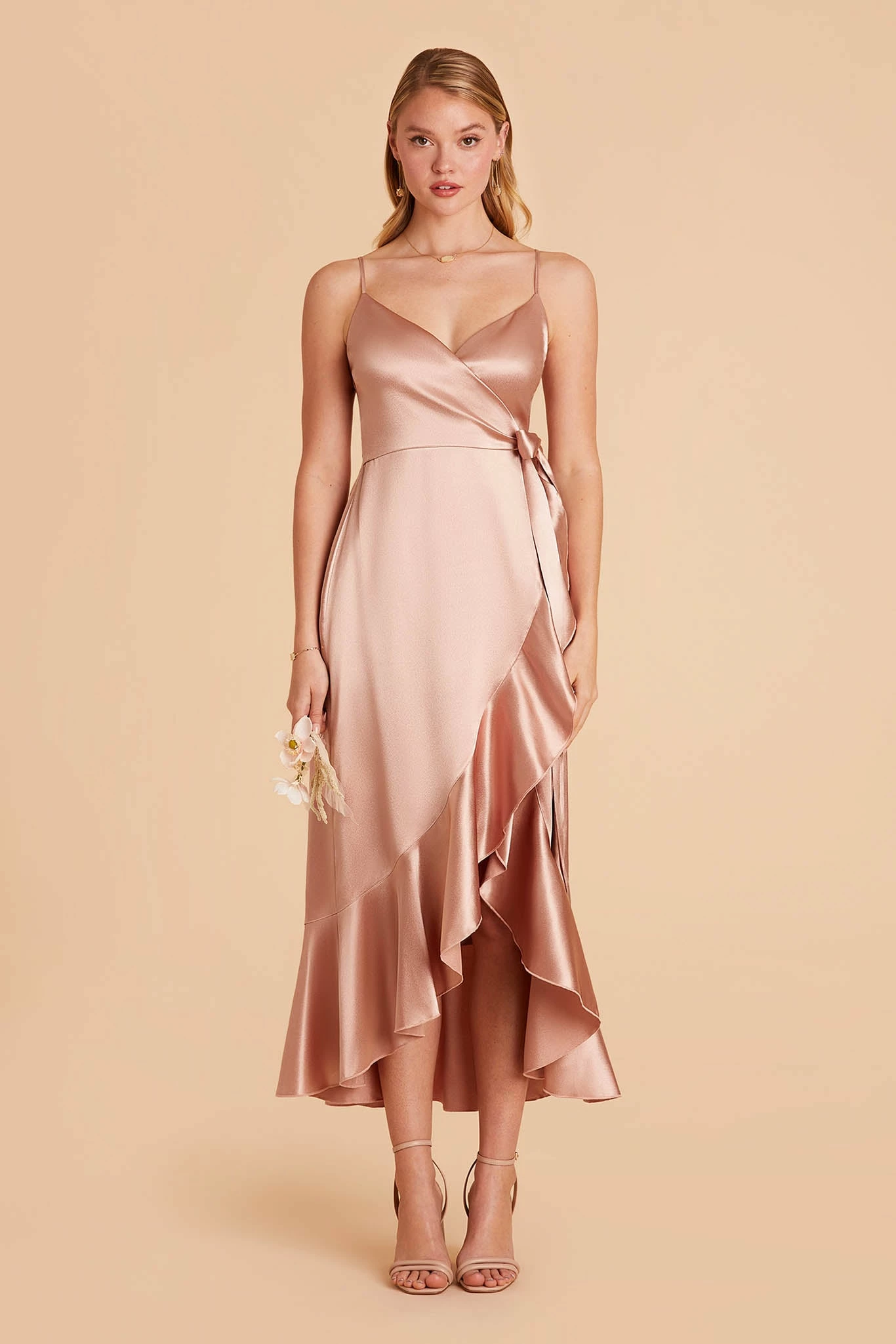 This isn’t Ennie-ol’ midi dress, if you’ll pardon the pun. The unique neckline is somewhere between a scoop neck and a cowl neck (and it’s the dead center of style). Ennie makes any bridesmaid look instantly pulled-together, and the soft draping of the neckline elevates the look. This dress is designed to hug your body, so we recommend sizing up if you prefer a looser fit. Check out our bridesmaid heels to complete the look.